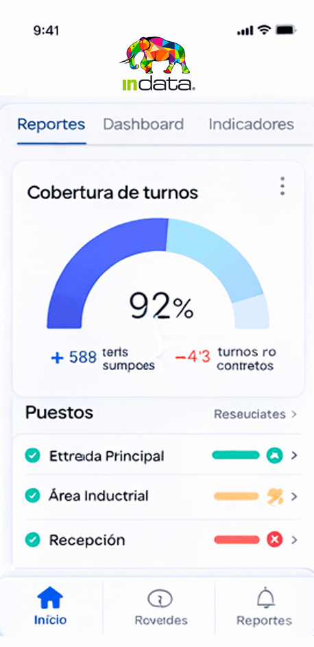 Centralice la programación de puestos, el control de asistencia, la liquidación de horas y la generación de informes para clientes. Permite gestionar operaciones con múltiples contratos y personal distribuido en campo.